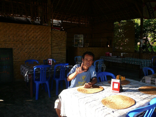 人はいいんだがさて、本日はさっさと宿に戻ることとするが、小腹がへったので、Kuta Indah手前にあるCherry Cafeでバナナフリッターを食べる。要は揚げバナナ。うまい。ここの店長は少し日本語がしゃべれるので、しばし談笑する。夜にBBQ食べにこないかと言われたので、ではせっかくですんで、とまた来る約束をした。