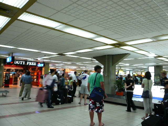入国審査時に、名ばかりのビザを取得しなければならん。10ドル払ってビザのシールをもらったはいいが、「ハネム~ン?フフフフ…」なんつて、係官全っ然パスポート見てないし。ちゃんと仕事してくれ。しかし、ああ、ここは南国なのね…。