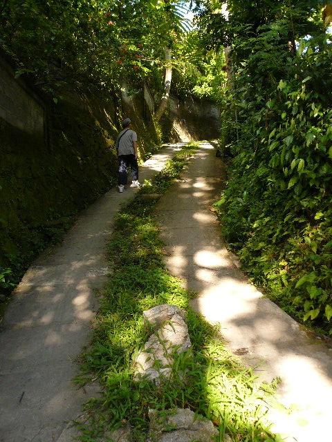京都にてマジ遭難して死ぬかと思ったあの日のことがフラッシュバック。ま、まあ海外だけど、まだ朝だし、戻ればいいし、と言いながら「戻る」という選択肢はまず選ばない我々。モッタイナイ精神が強いのだ。だがいいのか?ほんとにいいのか?進んでいいのか?30分くらい人に会ってませんけど?自分自身と葛藤しつつ、軽い崖みたいのを上がり切ってゼイゼイしていたら、小道を発見…。