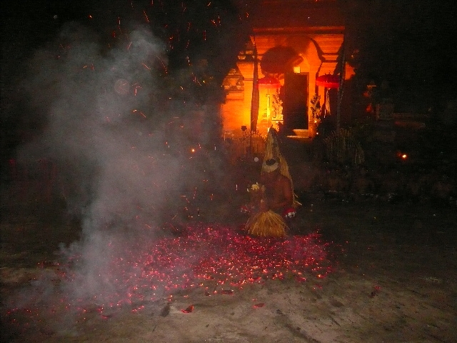 アチチ周りを見渡すと風情もクソもないことに気づくのだが、だが目の前にはそんなものそっちのけで赤々と燃えている炭のかけらを裸足で蹴りまくる完全トランス状態の男性がいる。