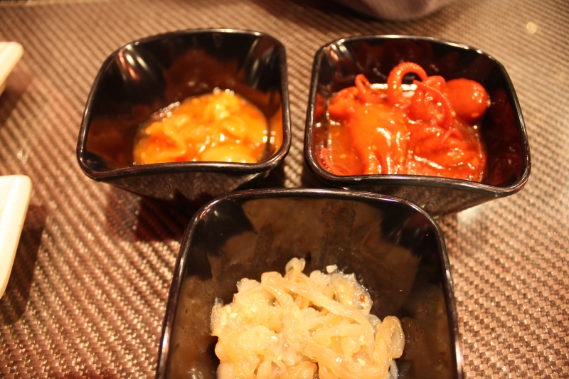 右上は味付けたこ、手前はワカメサラダ…てお言葉を返すようですがこれはキクラゲというものではないだろうか!