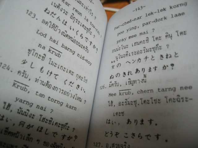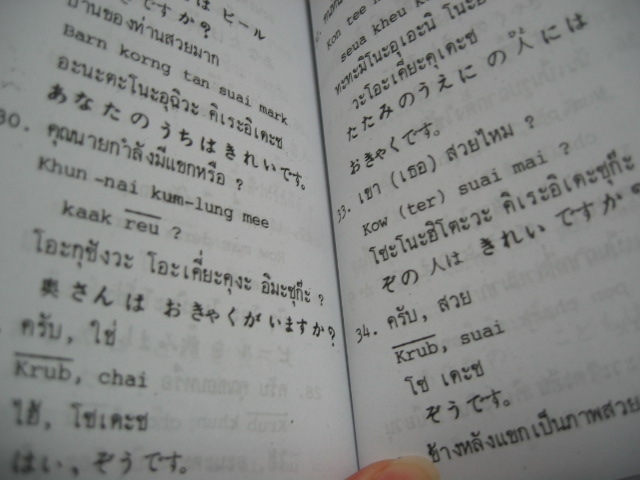 先日、初めての海外旅行に出かけた職場の人から、「とりあえず見てみて」と何やらおかしな本を渡された。どうやら、日タイの会話テキストのようである。タイトル部分に監修?「T.KIKUCHI」と記載あり…。