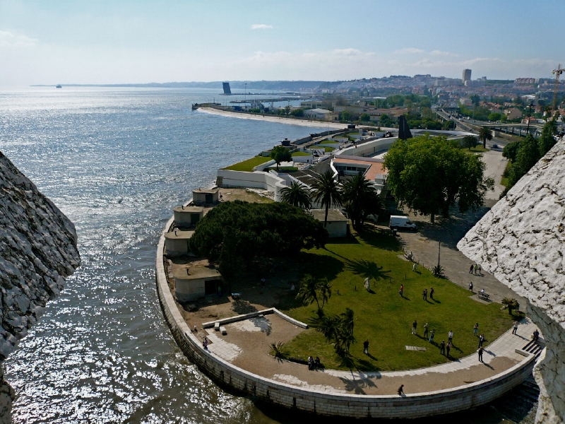 釣り人を横目に、上から、反射して下から、太陽に照りつけられまくりながら海沿いを歩き、2つ目の世界遺産、ベレムの塔へ。さっきのでっかいのに比べると何らたいした物でも…。1515年にリスボンの港をまもるために作られたらしい。へえ〜。