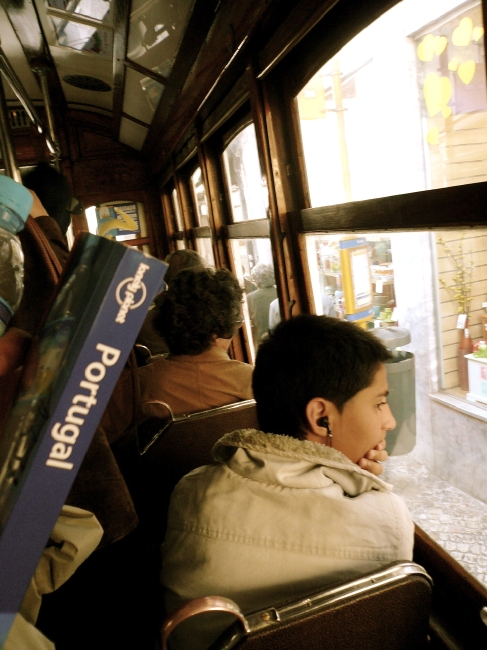 で、けっこうな道のりを引き返してリスボンへ戻り、トラムに乗ることにした。親切な奥さんに誘導され、風情があって人気の路線、28番へ乗り込む。